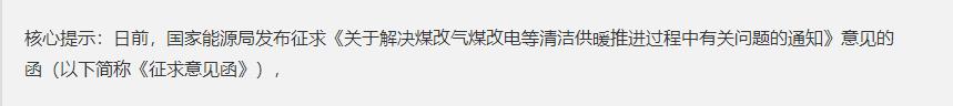 日前,國家能源局發(fā)布征求《關于解決“煤改氣”“煤改電”等清潔供暖推進過程中有關問題的通知》意見的函(以下簡稱“《征求意見函》”),引發(fā)業(yè)內熱議。